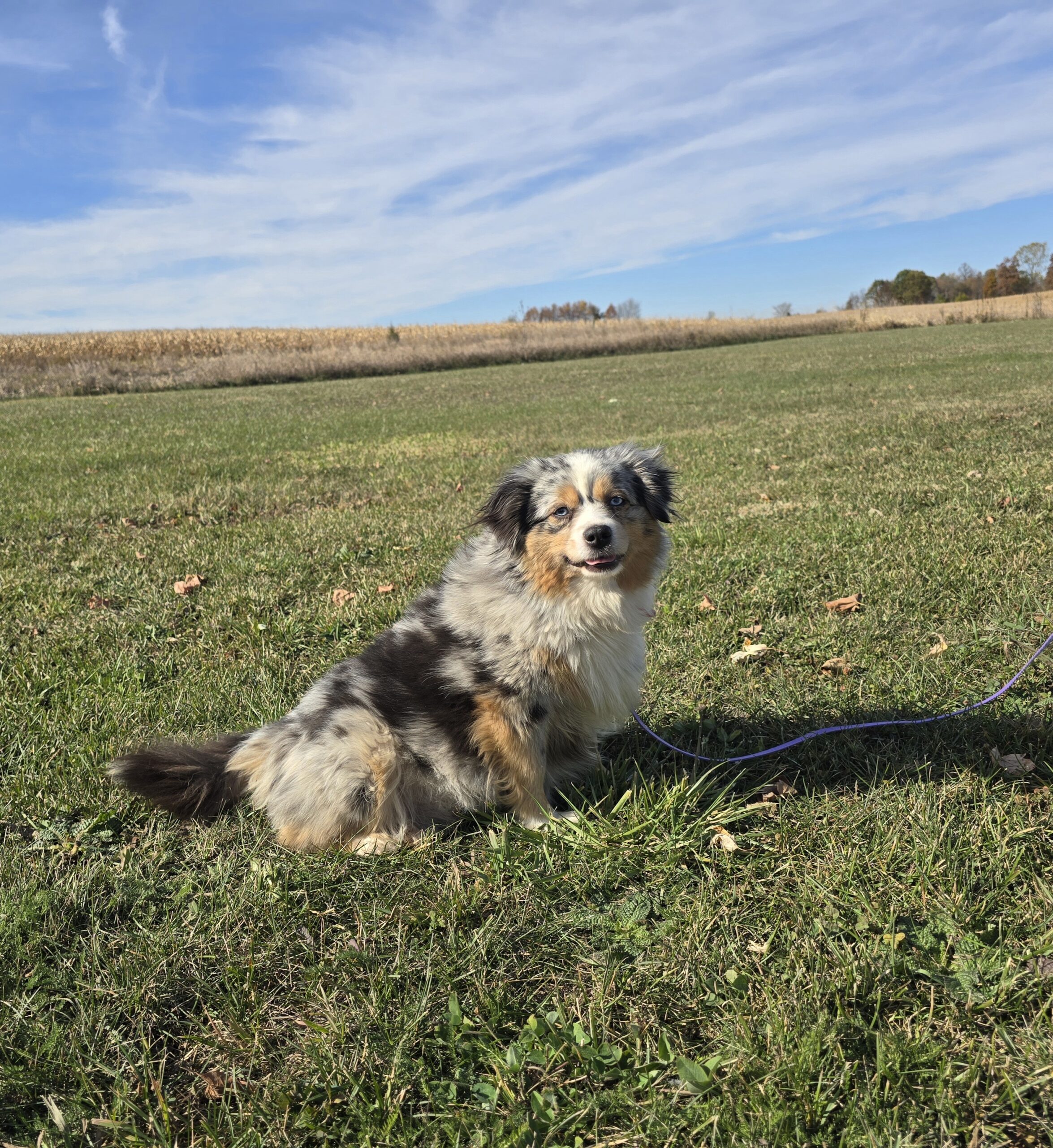 Princess is a great family dog. She loves to be around children, she also loves to run, play, and just chill out! She is a gorgeous blue merle with bright blue eyes!